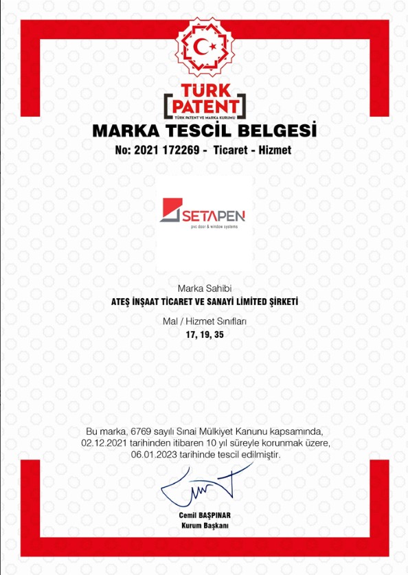 SETAPEN Marka Tescil Belgesi